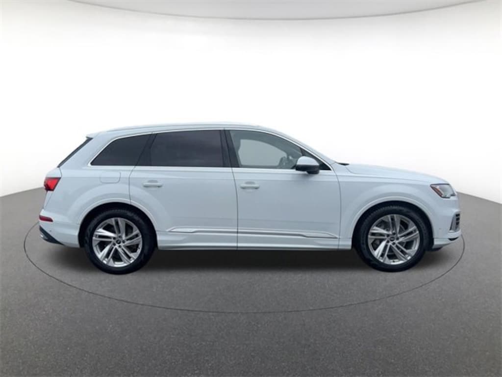 30 day Warranty, 10 Speakers, 3.204 Axle Ratio, 3rd row seats: bench, 4-Wheel Disc Brakes, ABS brakes, Air Conditioning, Alloy wheels, AM/FM radio: SiriusXM, Audi smartphone interface (Apple CarPlay/Android Auto), Auto High-beam Headlights, Auto-dimming Rear-View mirror, Automatic temperature control, Brake assist, Bumpers: body-color, Compass, Delay-off headlights, Driver door bin, Driver vanity mirror, Dual front impact airbags, Dual front side impact airbags, Electronic Stability Control, Emergency communication system: Audi connect CARE, PRIME & PLUS, Exterior Parking Camera Rear, Four wheel independent suspension, Front anti-roll bar, Front Bucket Seats, Front Center Armrest, Front dual zone A/C, Front fog lights, Front reading lights, Fully automatic headlights, Garage door transmitter: HomeLink, Genuine wood door panel insert, Heated door mirrors, Heated Front Bucket Seats, Heated front seats, Illuminated entry, Leather Seating Surfaces, Leather Shift Knob, Leather steering wheel, Low tire pressure warning, Memory seat, Navigation system: Audi MMI Navigation plus with Touch Response, Occupant sensing airbag, Outside temperature display, Overhead airbag, Overhead console, Panic alarm, Passenger door bin, Passenger vanity mirror, Power door mirrors, Power driver seat, Power Liftgate, Power moonroof, Power passenger seat, Power steering, Power windows, Radio data system, Radio: Audi Sound System, Rain sensing wipers, Rear air conditioning, Rear anti-roll bar, Rear fog lights, Rear reading lights, Rear seat center armrest, Rear window defroster, Rear window wiper, Reclining 3rd row seat, Remote keyless entry, Roof rack: rails only, Security system, Speed control, Speed-sensing steering, Split folding rear seat, Spoiler, Steering wheel memory, Steering wheel mounted audio controls, Tachometer, Telescoping steering wheel, Tilt steering wheel, Traction control, Trip computer, Turn signal indicator mirrors, Variably intermittent wipers, and Wheels: 19" 5-Arm-Star Design.