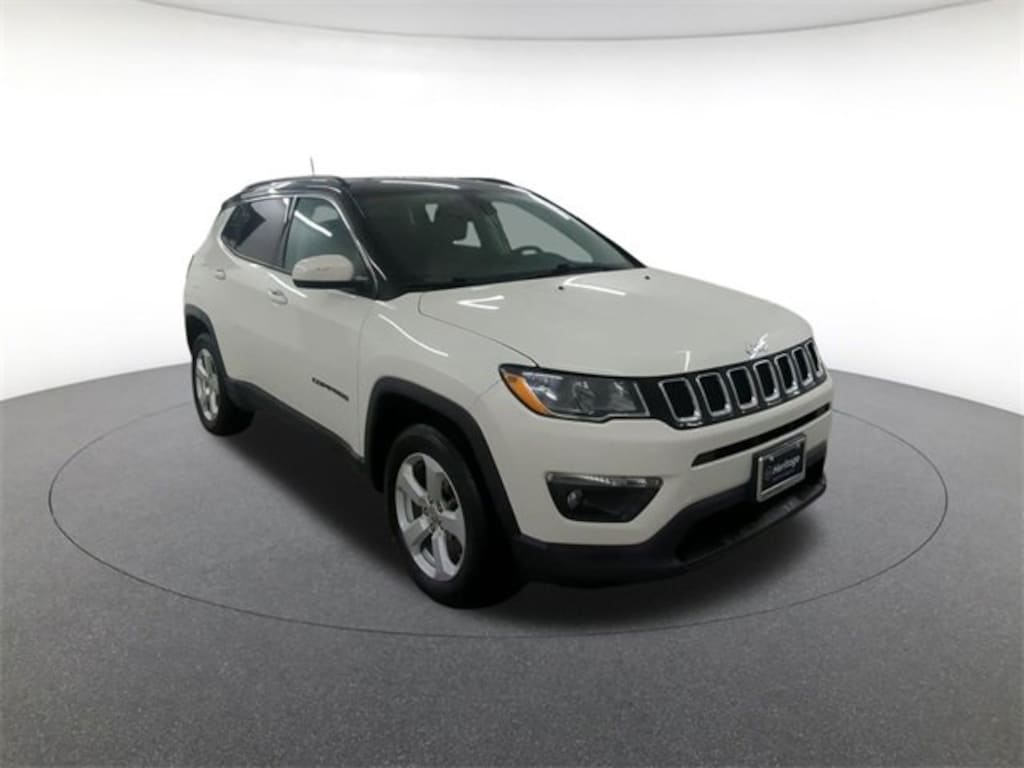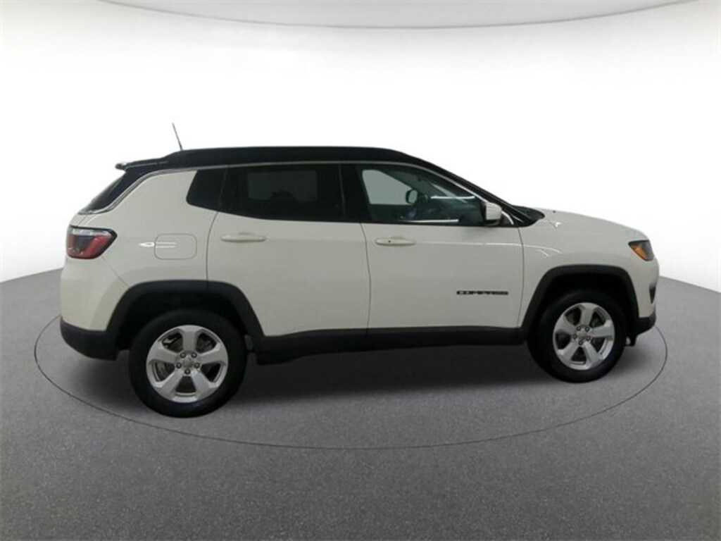 Cold Weather Group (All-Season Floor Mats, Heated Front Seats, Heated Steering Wheel, Reversible Carpet/Vinyl Cargo Mat, and Windshield Wiper De-Icer), Popular Equipment Group (115V Auxiliary Power Outlet, 4-Way Power Lumbar Adjust, 7.0" Touch Screen Display, Auto-Dimming Rear-View Mirror, Cluster 7.0" Color Driver Info Display, and Power 8-Way Driver/Manual 6-Way Passenger Seats), Quick Order Package 21J, Quick Order Package 27J, Safe & Security Group (Blind Spot & Cross Path Detection, ParkSense Rear Park Assist System, Rain Sensitive/Intermittent Wipers, and Security Alarm), Compass Latitude, 30 day Warranty, 4D Sport Utility, 2.4L I4, 9-Speed Automatic, 4WD, White Clearcoat, Black Cloth, 1-Year SiriusXM Radio Service, 3.833 Axle Ratio, 4-Wheel Disc Brakes, 6 Speakers, ABS brakes, Air Conditioning, Air Conditioning ATC w/Dual Zone Control, Alloy wheels, AM FM RADIO, Anti-whiplash front head restraints, Apple CarPlay, Brake assist, Bumpers: body-color, Compass, Cruise Control, Delay-off headlights, Driver door bin, Driver vanity mirror, Dual front impact airbags, Dual front side impact airbags, Electronic Stability Control, For More Info, Call 800-643-2112, Four wheel independent suspension, Front anti-roll bar, Front Bucket Seats, Front Center Armrest w/Storage, Front fog lights, Front reading lights, Fully automatic headlights, Google Android Auto, GPS Antenna Input, Heated door mirrors, Humidity Sensor, Illuminated entry, Integrated Center Stack Radio, Knee airbag, Low tire pressure warning, Manufacturer's Statement of Origin, Occupant sensing airbag, Outside temperature display, Overhead airbag, Overhead console, Panic alarm, ParkView Rear Back-Up Camera, Passenger door bin, Passenger vanity mirror, Power door mirrors, Power steering, power windows, POWER WINDOWS, Premium Air Filter, Premium Cloth/Vinyl Bucket Seats, Radio: Uconnect 3 w/5" Display, Radio: Uconnect 4 w/7" Display, Rear anti-roll bar, Rear seat center armrest, Rear window defroster, Rear window wiper, Remote keyless entry, Remote Start System, Roof rack: rails only, SiriusXM Satellite Radio, Split folding rear seat, Spoiler, Tachometer, Telescoping steering wheel, Tilt steering wheel, Traction control, Trip computer, USB Host Flip, Variably intermittent wipers, and Wheels: 17" x 7.0" Silver Painted Aluminum.