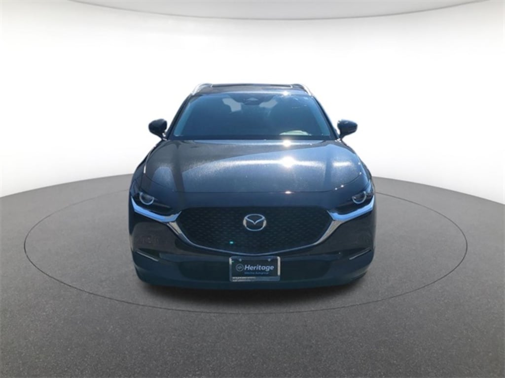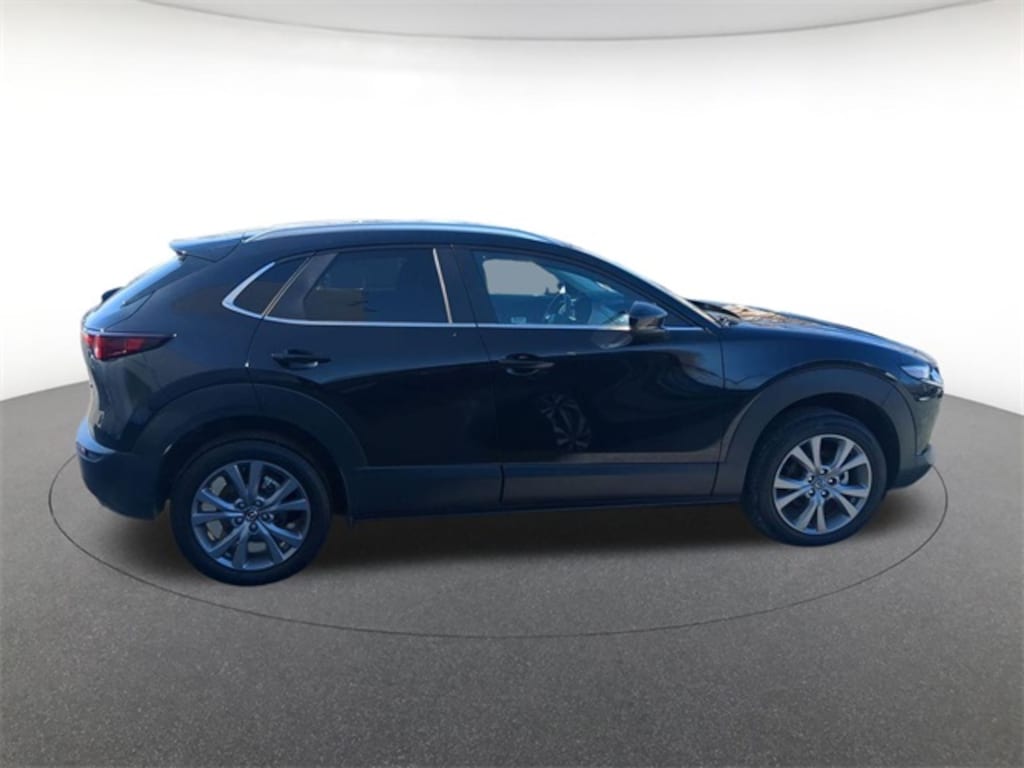4-Wheel Disc Brakes, 6 Speakers, ABS brakes, Air Conditioning, Alloy wheels, AM/FM radio, AppLink/Apple CarPlay and Android Auto, Auto High-beam Headlights, Automatic temperature control, Brake assist, Bumpers: body-color, Compass, Delay-off headlights, Driver door bin, Driver vanity mirror, Dual front impact airbags, Dual front side impact airbags, Electronic Stability Control, Emergency communication system: Mazda Connected Services (3-year trial subscription included), Exterior Parking Camera Rear, Front anti-roll bar, Front Bucket Seats, Front Center Armrest, Front dual zone A/C, Front reading lights, Front wheel independent suspension, Fully automatic headlights, Heated door mirrors, Heated Front Bucket Seats, Heated front seats, High Wall All-Weather Floor Mats, Illuminated entry, Knee airbag, Leather Shift Knob, Leather steering wheel, Leatherette Seat Trim, Low tire pressure warning, MAZDA CONNECT Infotainment System, Memory seat, Occupant sensing airbag, Outside temperature display, Overhead airbag, Overhead console, Panic alarm, Passenger door bin, Passenger vanity mirror, Power door mirrors, Power driver seat, Power moonroof, Power steering, Power windows, Radio data system, Radio: AM/FM Audio System, Rain sensing wipers, Rear seat center armrest, Rear side impact airbag, Rear window defroster, Rear window wiper, Remote keyless entry, Speed control, Speed-sensing steering, Split folding rear seat, Spoiler, Steering wheel mounted audio controls, Tachometer, Telescoping steering wheel, Tilt steering wheel, Traction control, Trip computer, Turn signal indicator mirrors, Variably intermittent wipers, and Wheels: 18" x 7J Aluminum Alloy.